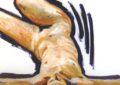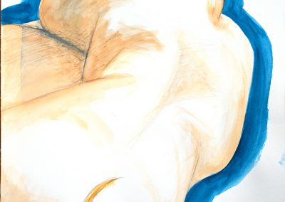 Während meines Studiums an der Universität habe ich zunächst zunächst mit dem Klassiker schlechthin begonnen, der Kohle auf großformartigem Papier. Die Zeichenblätter wurden kleiner und die Zeichnungen mit Bleistift feiner. Zur Bearbeitung der Körperoberfläche kam die Aquarellfarbe hinzu, welche ich oftmals auch linear verwende.